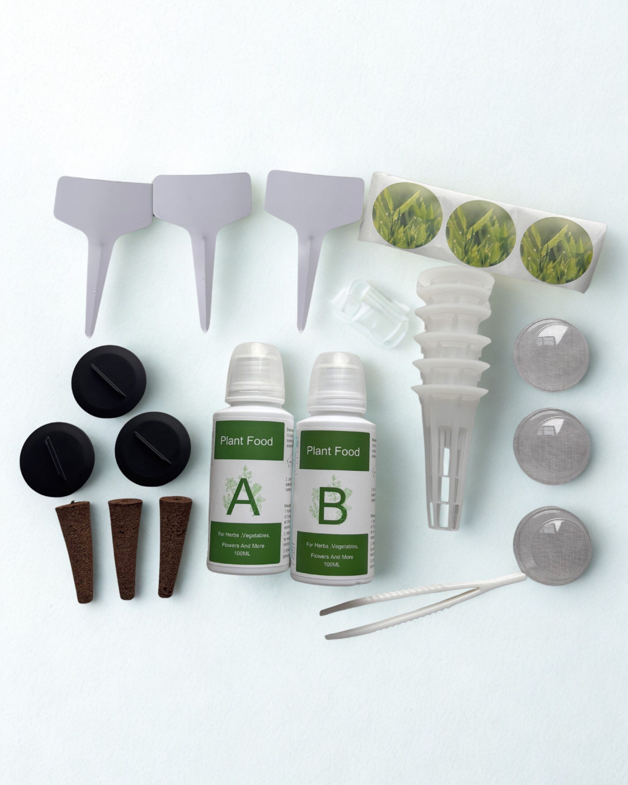 - 30 vnt. sodinimo krepšelių – stabiliai laikyti kempinėles hidroponinėje sistemoje.